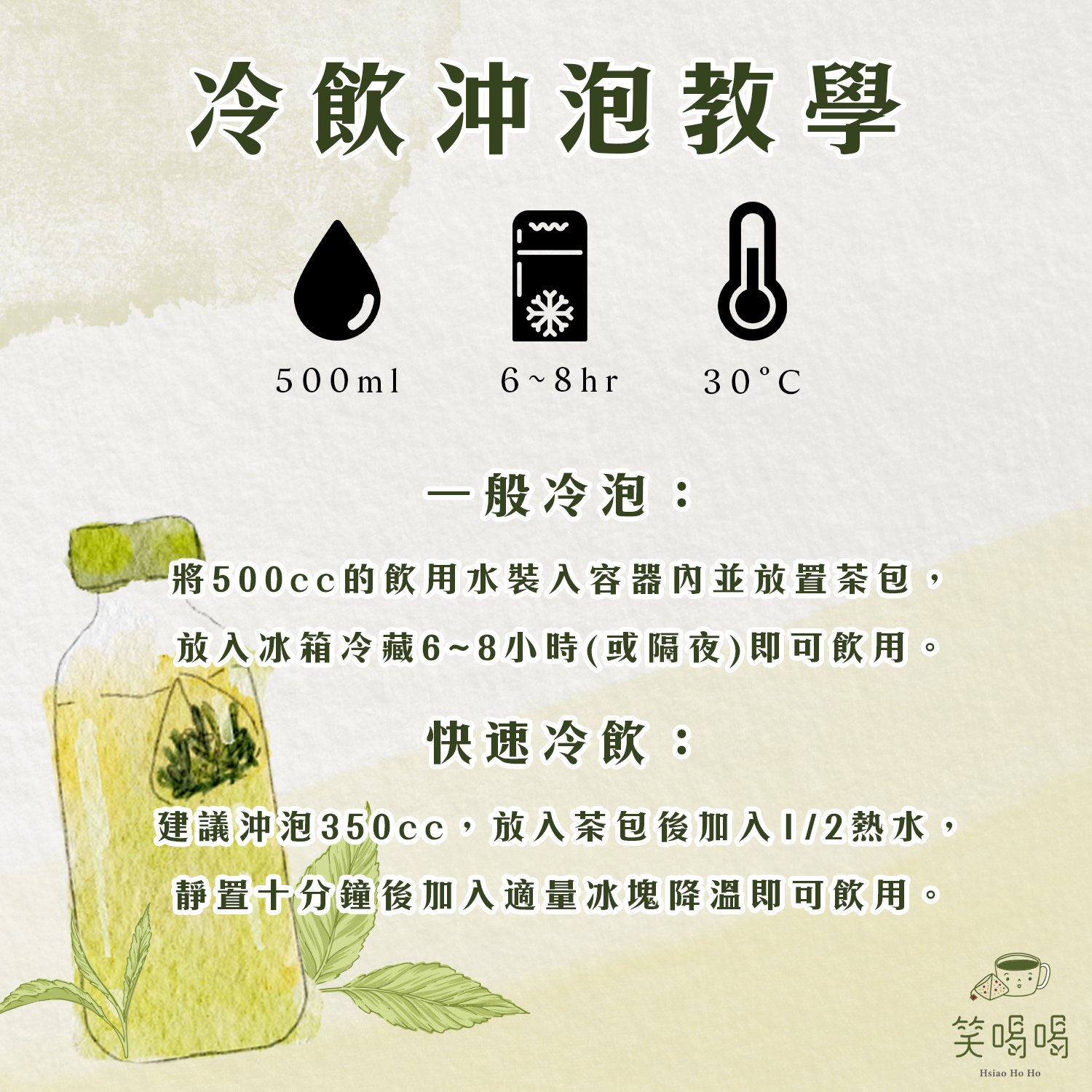 沖泡方式:加3~500cc熱水,約3分鐘即可飲用。可回沖數次,濃淡可依個人調整